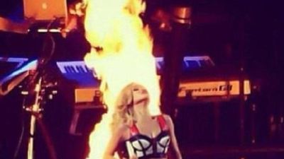 وتم التقاط هذه الصورة خلال حفلة لها في البرتغال ضمن جولتها الغنائية العالمية  وتأتي هذه النيران جزء من الإستعراض الذي قدمته على المسرح.