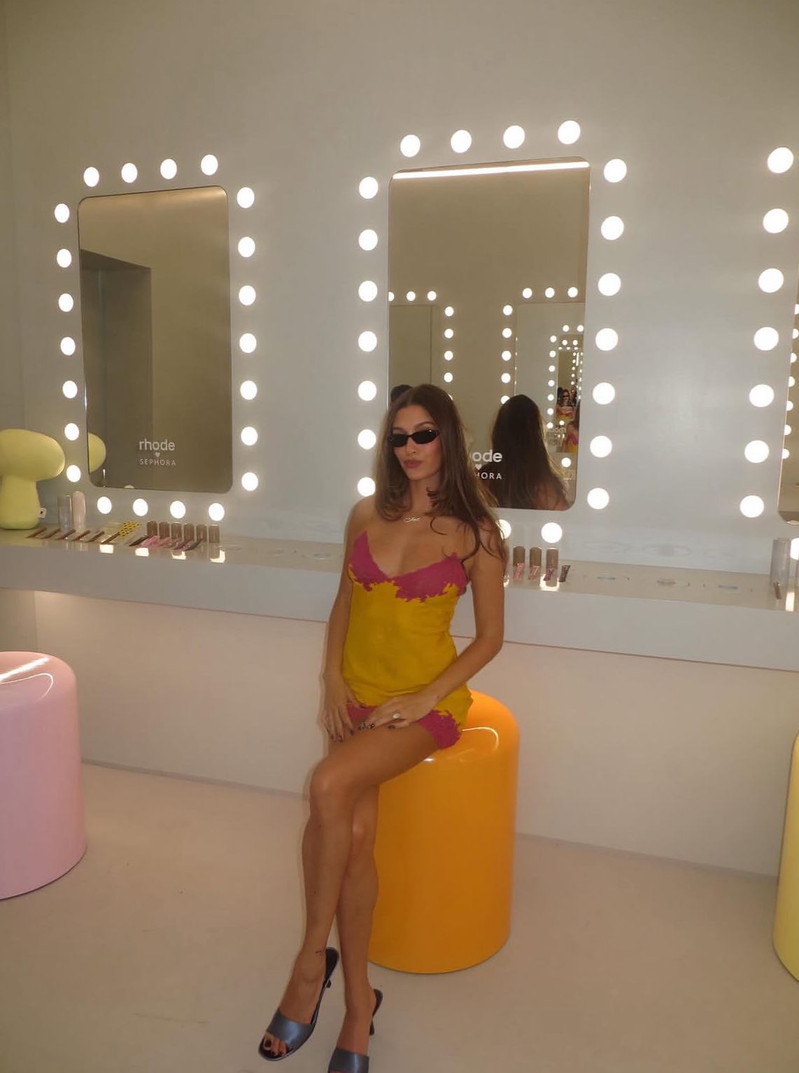 فقد تألقت هايلي بأزياء صيفية كاجوال تناسب أجواء الحدث، حيث تنوّعت اختياراتها بين السراويل الواسعة مع قمصان قصيرة، وفساتين ملونة بتصاميم عصرية، عكست روح المهرجان الحيوية والشبابية.