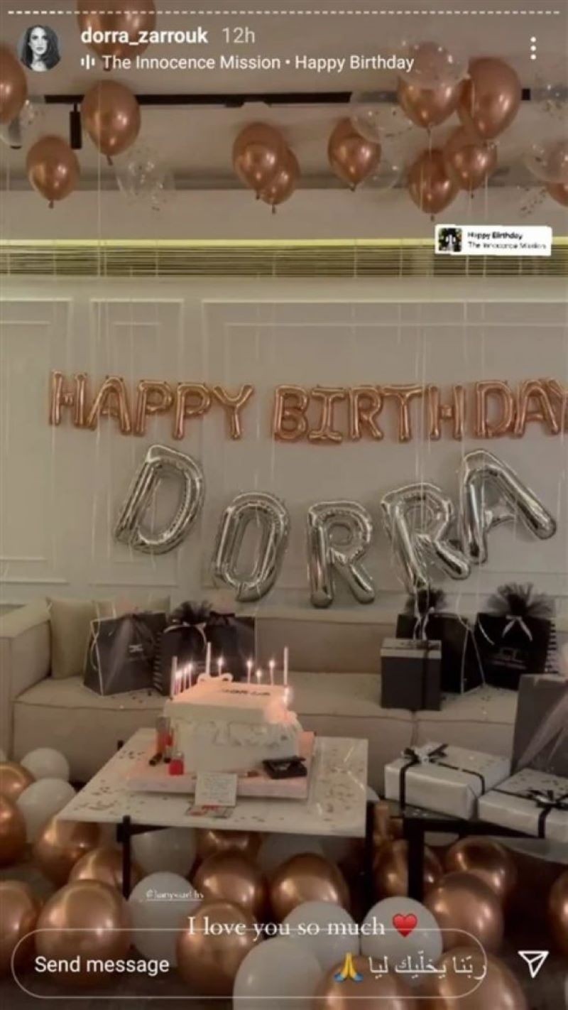 عبّرت الفنانة التونسية درّة زروق عن فرحتها بالطريقة التي فاجأها بها زوجها المهندس ورجل الأعمال هاني سعد بمناسبة عيد ميلادها الـ41، وذلك من خلال مشاركتها للجمهور على مواقع التواصل لبعض الصور واللقطات التي وصفتها بأنها "أجمل مفاجأة في حياتي".