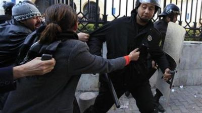 ورفض الجيش التونسي قمع المتظاهرين لكن يعتقد على نطاق واسع ان أجهزة الامن والشرطة الضخمة هي التي ضربت الحشود وأطلقت النار عليها.