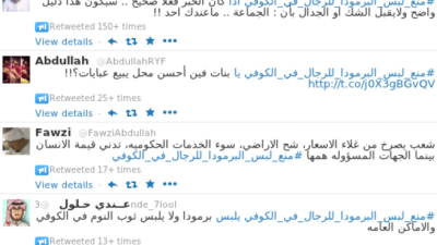 انتشر في موقع تويتر هاشتاغ عن حملة لمنع لبس الرجال السعوديون للبرمودا في المقاهي، ورغم انه لا يوجد أي تأكيد او نفي على صدور مثل هذا القرار الا ان المغرديين السعوديين تفاعلوا مع هذا الهاشتاغ تفاعلاً كبيراً ولم تخلو التعليقات من السخرية والتهكم في اغلبها: