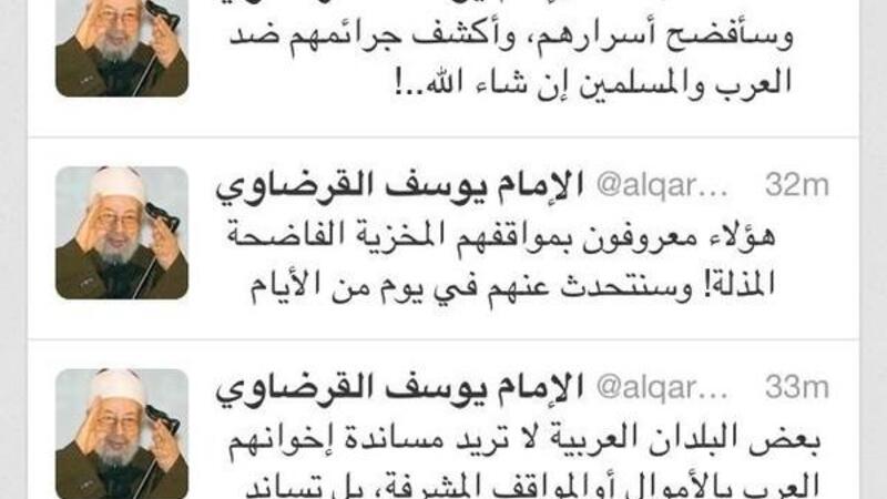 @kaiaal11 القرضاوي لايستطيع التهجم على اي دولة أو شخصية أو حتى مجرد تصريح مالم يتلقى تعليمات مدون بها مايراد ايصاله