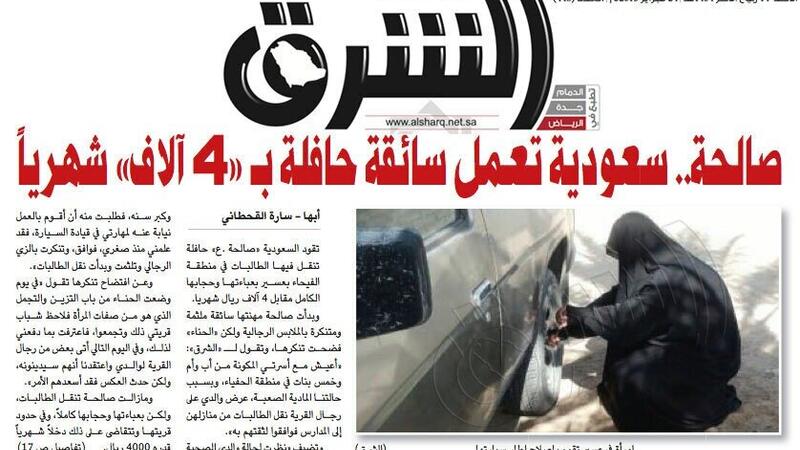 اثار الخبر الذي نشرته اليوم صحيفة الشرق السعودية عن المواطنة "صالحة" والتي تعمل سائقة حافلة لنقل الطالبات في منطقة عسير السعودية بدخل شهري 4 الاف دينار وذلك بعد مرض والدها وللتمكن من مساعدة اسرتها ردود فعل واسعة ومتضاربة في موقع التواصل الاجتماعي تويتر :