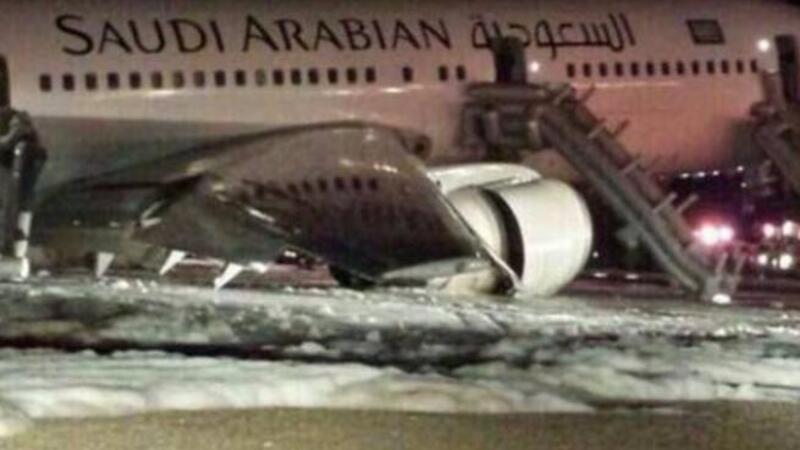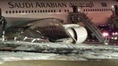 أصيب 29 راكباً بإصاباتٍ مختلفة أغلبيتها طفيفة في حادثة هبوط طائرةٍ تابعة للخطوط السعودية في مطار الأمير محمد بن عبد العزيز بالمدينة المنوّرة في وقتٍ مبكرٍ من فجر يوم الأحد بدون عجلات،واثارت هذه الحادثة موجة من التعليقات في موقع التواصل الاجتماعي تويتر: