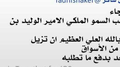 - اتمنى من الوليد بن طلال التكرم والسعي في تلبية طلب هذا التائب بسحب جميع أغانيه من السوق لعلها تكون له حسنة عندالله