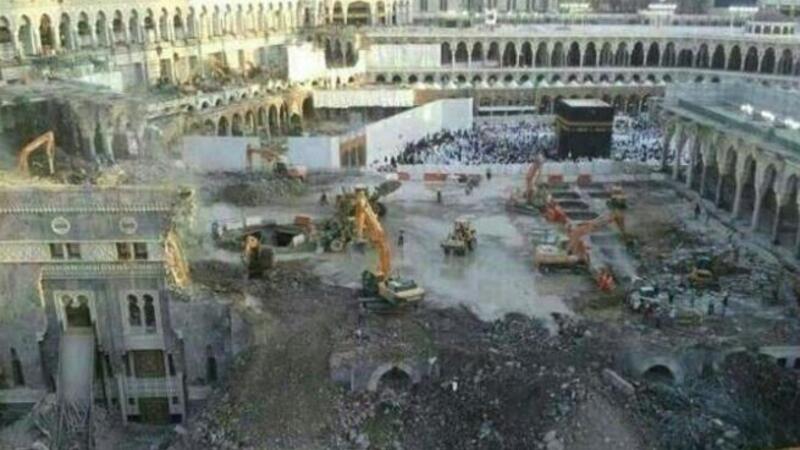 - المفتي يجيز هدم الكعبة ومقام ابراهيم لبناء اطول عمارة في مكة. هذا الخبر بعد خمس سنين في الجرايد