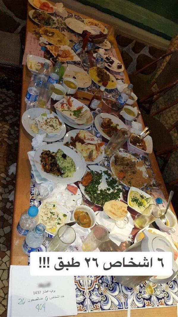 وثّق مطعم سعودي شهير يقدم خدمة إفطار شهر رمضان على طريقة "البوفيه المفتوح" إسراف الزبائن المفرط في طلب الطعام بما يزيد عن الحاجة.