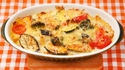 - صبي باقي البشاميل فوق الخضار، ثم وزعي الجبن على الوجه.