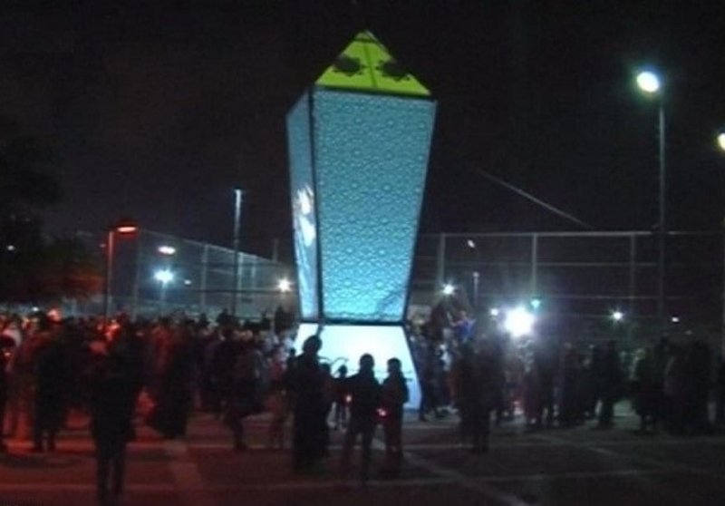 على قرع الطبول يحتشد فلسطينيون في مدينة القدس القديمة من أجل إضاءة فانوس ضخم خاص بشهر رمضان. الفانوس الرمضاني التقليدي يبلغ ارتفاعه عشرة أمتار مما يجعله الأضخم في المدينة المقدسة.