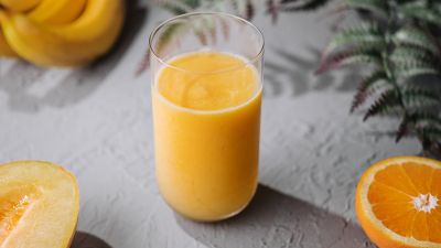 - عصر البرتقال وإضافة قطع الموز.