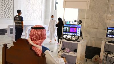 فحص المعتمرين والزائرين حراريًا بالمسجد الحرام
