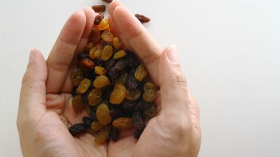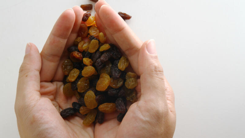اغسلي جيّداً الزبيب بالمياه للتخلّص من الأوساخ، ثمّ انقعي ملعقتين من هذا الطعام في كوب من المياه طيلة الليل. في اليوم التالي صفّي الزبيب من المياه، ثمّ اخلطيه مع المياه بواسطة الخلاّط الكهربائي. اشربي ماء الزبيب على معدة فارغة قبل بدء الإفطار، لترطّبي بشرتكِ وتعيدي إليها شبابها.