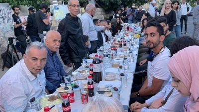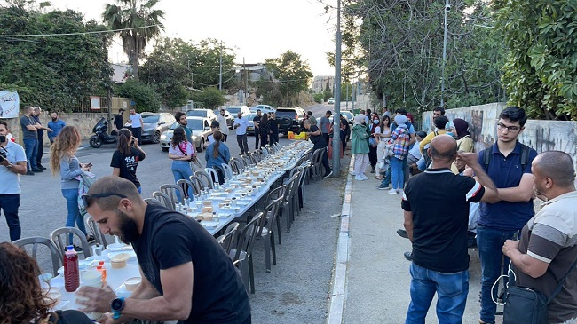 نظمت فعاليات شبابية فلسطينية إفطارًا جماعيًا في حي الشيخ جراح، في القدس المحتلة الذي يشهد مواجهات عنيفة على يد جنود الاحتلال الإسرائيلي.