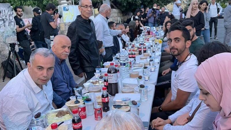 وأقام النشطاء مائدة كبيرة للإفطار لأهالي الحي وسط حضور أعداد كبيرة من قوات الاحتلال.