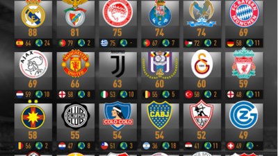 وخلت قائمة الخمسة الآوائل من أندية ريال مدريد وبرشلونة وبايرن ميونيخ ويوفنتوس.