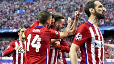 لاعبو أتلتيكو يحتفلون بهدف ساول