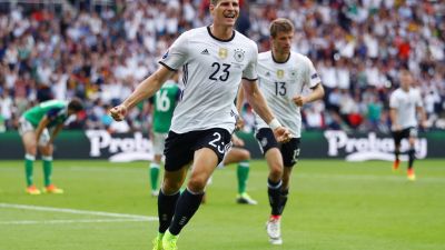 ضمن منتخب ألمانيا صدارة المجموعة الثالثة من بطولة يورو 2016 بعد فوزه على غريمه الآيرلندي الشمالي بهدفٍ دون رد في المباراة التي شهدها ملعب دو فرانس.