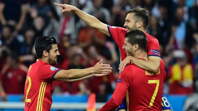 سحق منتخب إسبانيا غريمه التركي بثلاثيةٍ نظيفة في اللقاء الذي شهده ملعب آليانز ريفيير لحساب المجموعة الرابعة من يورو 2016 ليبلغ دور الـ 16.