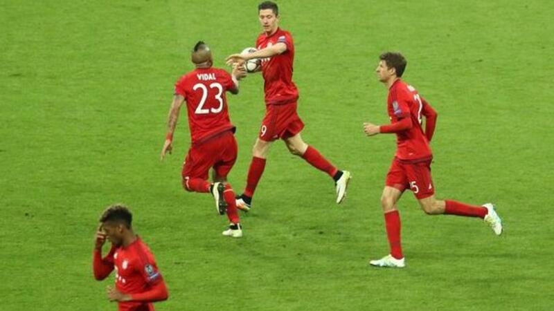 تأهل أتلتيكو مدريد الإسباني إلى نهائي دوري أبطال أوروبا بصورة مثيرة رغم خسارته أمام مستضيفه بايرن ميونخ الألماني بهدف لاثنين على ملعب آليانز آرينا ضمن إياب نصف النهائي كونه حقق الفوز ذهاباً بهدف نظيف وذلك وفقاً لقاعدة الأهداف المسجلة خارج الديار.
