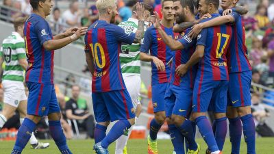 فاز برشلونة الإسباني على غريمه سيلتك الاسكتلندي بنتيجة 3-1 في المباراة التي جرت على ملعب آفيفا لحساب الكأس الدولية للأبطال.