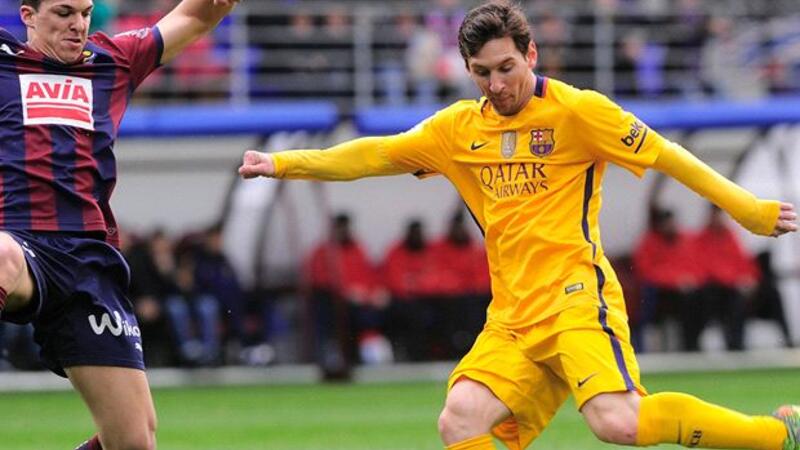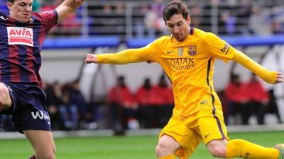 سحق برشلونة مستضيفه آيبار برباعيةٍ دون رد في المباراة التي جرت على ملعب إبوروا مونسيبال لحساب المرحلة الـ 28 من الدوري الإسباني.