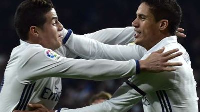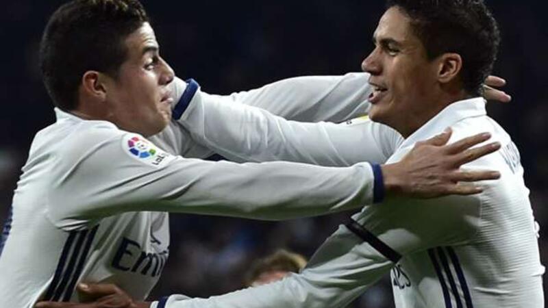 تناوب على تسجيل الأهداف التي جاءت جميعها خلال الشوط الأول كلٌ من خاميس رودريغيز (هدفان) في الدقيقتين 11 و (44 من ركلة جزاء)، ورافاييل فاران (29).