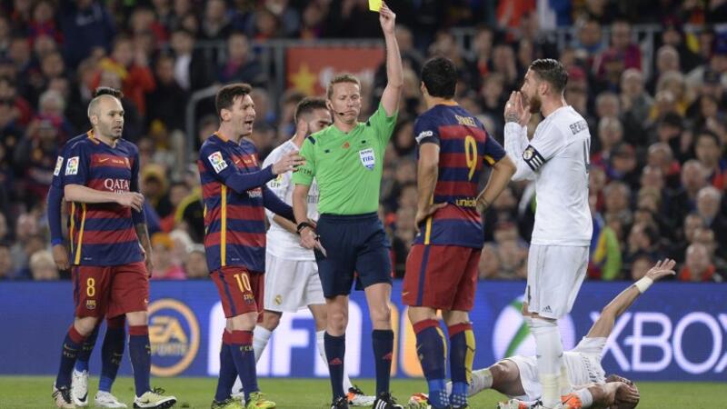 وكان صاحب الخبر مهاجم الفريق لويس سواريز، الذي تحصل على بطاقة صفراء بعد تدخله على بيبي مدافع الريال.