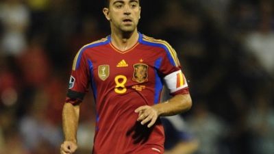 صورة أرشيفية لتشافي بقميص منتخب إسبانيا