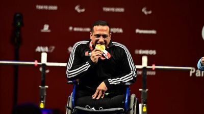 فاز الأردني عمر قرادة اليوم الخميس بالميدالية الذهبية ضمن منافسات رفع الأثقال لوزن 49 كغم في دورة الألعاب البارالمبية (طوكيو 2020).