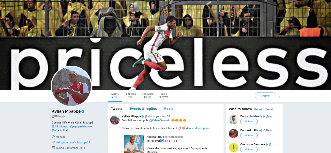 أثار الشاب كيليان مبابي نجم موناكو الغموض حول مستقبله بعدما قام بإزالة اسم فريقه الفرنسي من حسابه الشخصي على موقع "تويتر".