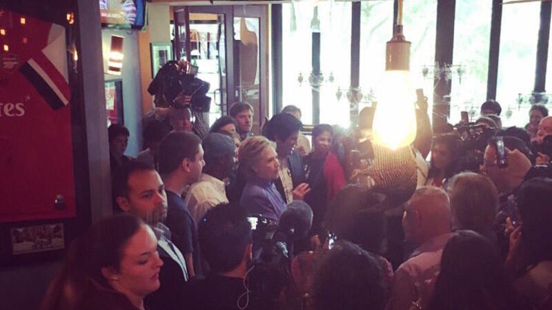 وبحسب ما ذكرته أغلب صحف بريطانيا، فإن زوجة الرئيس الأميركي السابق بيل كلينتون تواجدت في إحدى الحانات التابعة لمشجعي الغانرز في ولاية ميامي، كما تحدثت مع أشخاص كانوا يرتدون قميص آرسنال، لشرح برنامجها الانتخابي قبل أيام قليلة من بدء الانتخابات.