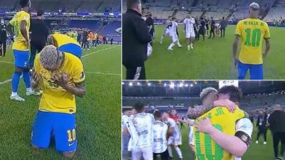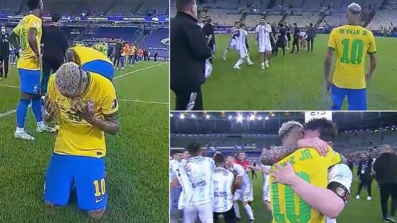 في المقابل، انهار نيمار الذي يصغر زميله بـ 5 أعوام بعد صافرة النهاية، إلا أنه تمالك نفسه وذهب لتهنئة ميسي في بادرة تؤكد روحه الرياضية العالية.