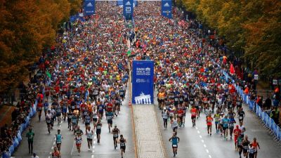 ويشارك في ماراثون برلين عشرات الآلاف من العدائين والعداءات. وكان العداء الأثيوبي كينينيسا بيكيلي فشل العام الماضي بفارق ثانتين فقط من تحطيم الرقم القياسي لهذا السباق الذي يمتد على مسافة 42.195 كيلومترا.
