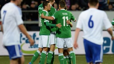 بات منتخب ألمانيا على مشارف التأهل لكأس العالم 2014 بعد فوزه على مستضيفه منتخب جزر الفارو بثلاثيةٍ نظيفة في اللقاء الذي جرى بينهما لحساب المجموعة الثالثة من تصفيات قارة أوروبا المؤهلة للمونديال.