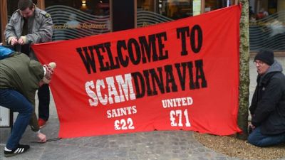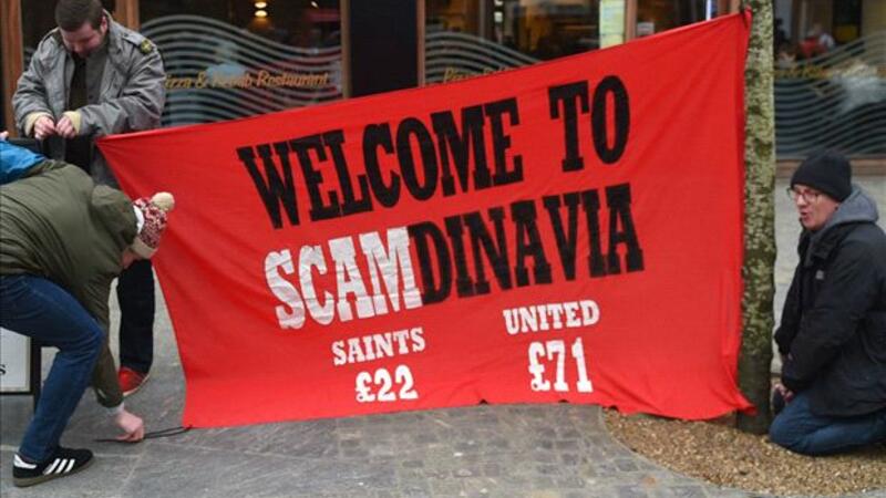 ودفع مشجعو ساوثهامبتون 22 جنيهاً ثمناً لتذكرة المباراة على أرض الفريق الدنماركي خلال تصفيات الدوري الأوروبي في أغسطس الماضي ومن ثم قرر مشجعو يونايتد رفع لافتات احتجاج على رفع سعر التذكرة بهذه النسبة العالية.