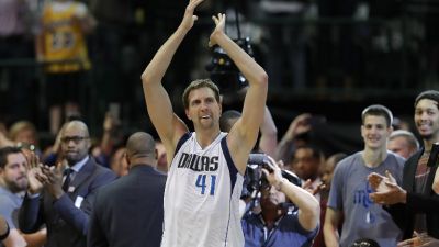 ودّع العملاق الألماني المخضرم ديرك نوفيتسكي ملعب أوراكل أرينا الذي سجل فيه سلته الأولى في دوري كرة السلة الأميركي للمحترفين قبل قرابة 21 عاماً، بأفضل طريقة من خلال قيادة دالاس مافريكس لفوز كبير على مضيفه غولدن ستايت ووريرز حامل اللقب 91-126.