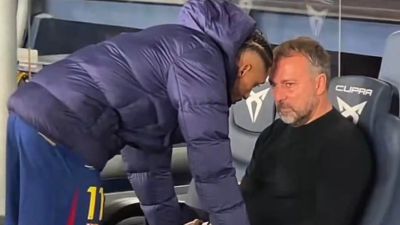 أظهرت اللقطات فليك وهو يهز رأسه بالنفي مرتين لرافينيا، وبدا متأثراً للغاية، وكأنه غير سعيد بما شاهده خلال المباراة، لكن، ووفقاً لما ذكرته قناة "TV3" الكتالونية، فإن ملامح فليك الغاضبة كانت مرتبطة برد فعل الحكام وانعدام التواصل معهم، وهي مشكلة وصفها التقرير بأنها متكررة، فقد قام الحكم أورتيز أرياس بطرد اثنين من مساعدي فليك بسبب الاحتجاج: خوسيه رامون دي لا فوينتي في الدقيقة 65، وماركوس سورغ في الدقيقة 90.