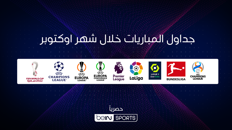 تقدم beIN SPORTS القناة الرياضية الرائدة التابعة لمجموعة beIN الإعلامية والناقل الرسمي لبطولة كأس العالم FIFA قطر 2022 ضمن نطاق الشرق الأوسط وشمال إفريقيا – تشكيلة من 13 مباراة لا يمكن تفويتها خلال شهر أكتوبر المقبل، حيث تواصل أكبر الأندية المتنافسة في الدوريات الأوروبية تقديمها لموسم مميز من المباريات الحماسية والشيقة.