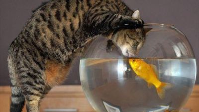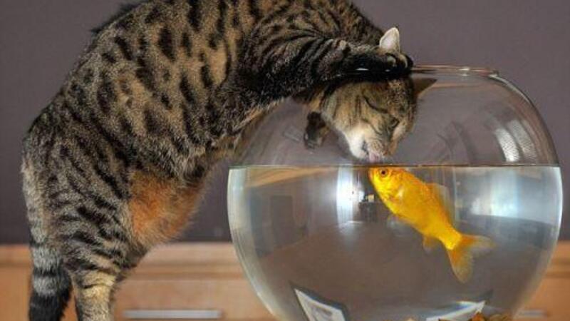 والمعروف أن الأسماك تعد عادة وجبة مغرية للهررة، لكن الهر كايسر، البالغ من العمر 4 سنوات، طور علاقة وطيدة مع السمكة الذهبية فيشي. فكايسر غالباً ما ينحني فوق حوض السمكة، ليس لالتهامها بل لتقبيلها أو شرب الماء فقط.