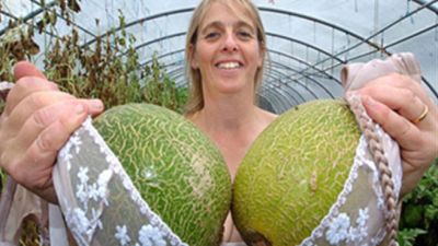 لم تجد مزارعة بريطانية دؤوبة سوى حمالات الصدر القديمة لديها لاستخدامها في حماية محصولها من البطيخ الذي يتعرض لخطر السقوط بسبب كسر سيقانه أثناء نموه.