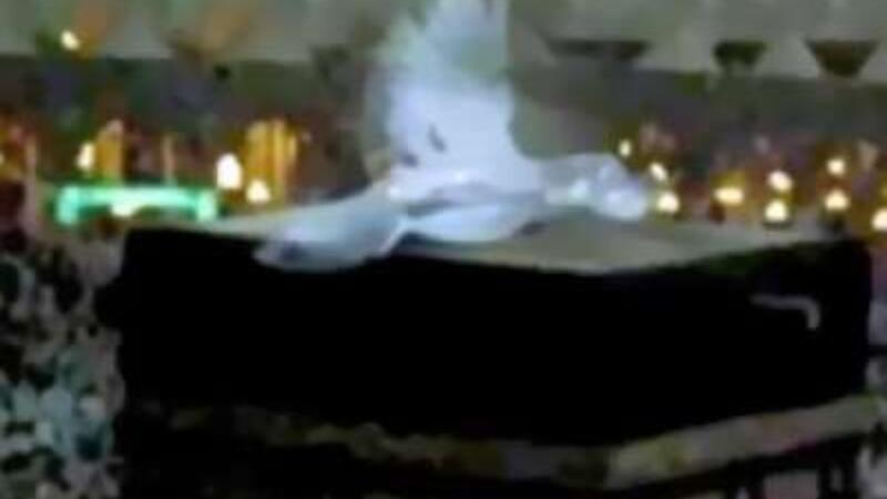 والفيديو الذي تم وضعه على يوتيوب مؤخرا، قال إن لقطات لمشهد السماء فوق الحرم المكي أظهرت نورا يتساقط على المصلين، ثم يعيد الفيديو هذه المشاهد بالتصوير البطيء مع التركيز على الهالات البيضاء التي تتساقط من السماء.