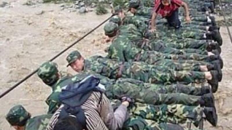 تاريخ النشر: 22 أغسطس 2011 - 12:11 GMT جسر بشري صورة معبرة لجنود صينيين يشكلون جسراً بشرياً بأجسامهم ليعبر الأطفال عليه خلال فيضانات العام الماضي بدلاً من الجسر المتهالك!!جيوش تصنع من أجسامها جسوراً لتحمي أبناء شعبها، وجيوش تصنع من أجسام شعبها جسوراً ليعبر عليها حاكموها! © 2000 - 2026 البوابة (www.albawaba.com) الأحدثترند رونالدو يحسم مستقبله مع النصر برسالة عاطفية في يوم التأسيس مصر : منجم السكري أنتج500 ألف أونصة ذهب خلال 2025 اشتباكات عنيفة بين الجماهير والشرطة بعد مباراة أوساسونا وريال مدريد مشهد الليمونة في مسلسل مولانا يحوّل تيم حسن إلى أيقونة رمضانية حديثة كيف يستفيد الاقتصاد السوري من رفع العقوبات؟ Loading content ... الاشتراك اشترك في النشرة الإخبارية للحصول على تحديثات حصرية ومحتوى محسّن إشترك الآن