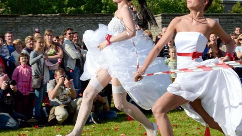 اخر اجواء مرح هؤلاء العوانس انهن نظمن سباقاً باثواب الزفاف فيما بينهن.. اظهرن فيها مهاراتهن في الركض وراء رجل ايضاً.