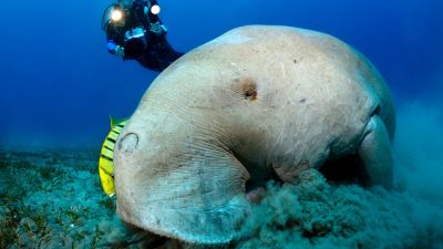 أقرب الثديات البحرية شبها بالفيل وأحد الحيوانات الضخمة المهددة بالإنقراض