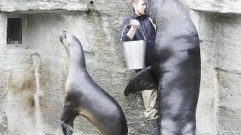 رصدت عدسة مصور هاو صوراً لمشهد طريف في حديقة حيوان فيينا، وهي الصور التي تبين كيف ان انثى أسد بحر ضخمة حاولت ان تلتقم رأس حارسها اعتراضا على عدم حصولها ما يكفيها من طعام.