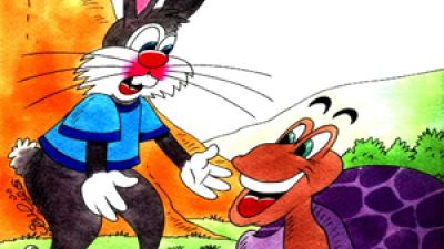 اسبوووع ولسه السلحفاة مش راجعة.. المهم طاب الارنب وطلع بدو يدور عليها فبفتح باب البيت..