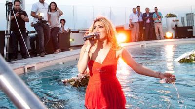 داخل بركة سباحة في أحد فنادق العاصمة التونسية، أطلقت المغنية إيمان الشريف حفل توقيع ألبومها الجديد “مولى الشاش”.