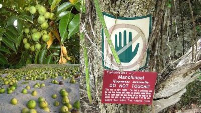 " أخطر شجرة على وجه الأرض " .. شجرة تسبب العمى وقد يكون الوقوف تحتها وقت المطر سبباً في قتلك إنها شجرة " المنشينيل "