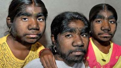أما الشقيقات الثلاث اللواتي ابتلين بداء المتلازمة المستذئبة فإنهن الهنديات سافيتا (23 عاماً) ومونيشا (18 عاماً) وسافيتري (16 عاماً)، وهن يعشن مع أمهن في قرية قريبة من مدينة بوني في وسط الهند.