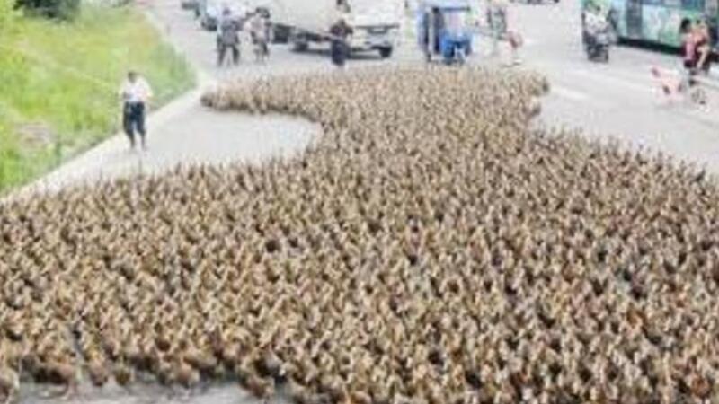 تسبب مزارع صيني في ارباك حركة المرور في الشارع الرئيسي ببلدته، وذلك عندما اقتاد سربا يتألف من نحو 5 آلاف بطة في طريقه الى بحيرة قريبة طلبا للغذاء.